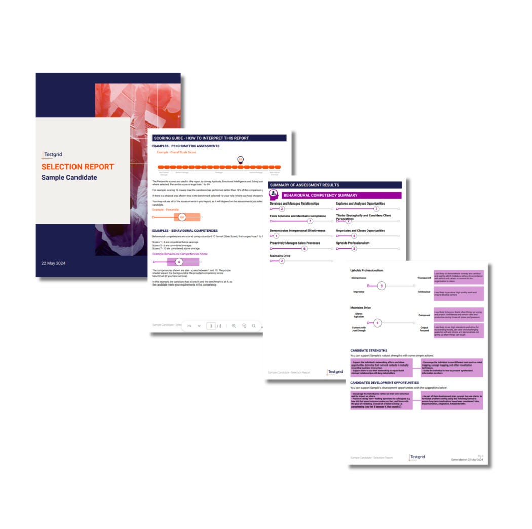 You will receive individual reports within several hours of each candidate completing their assessment.