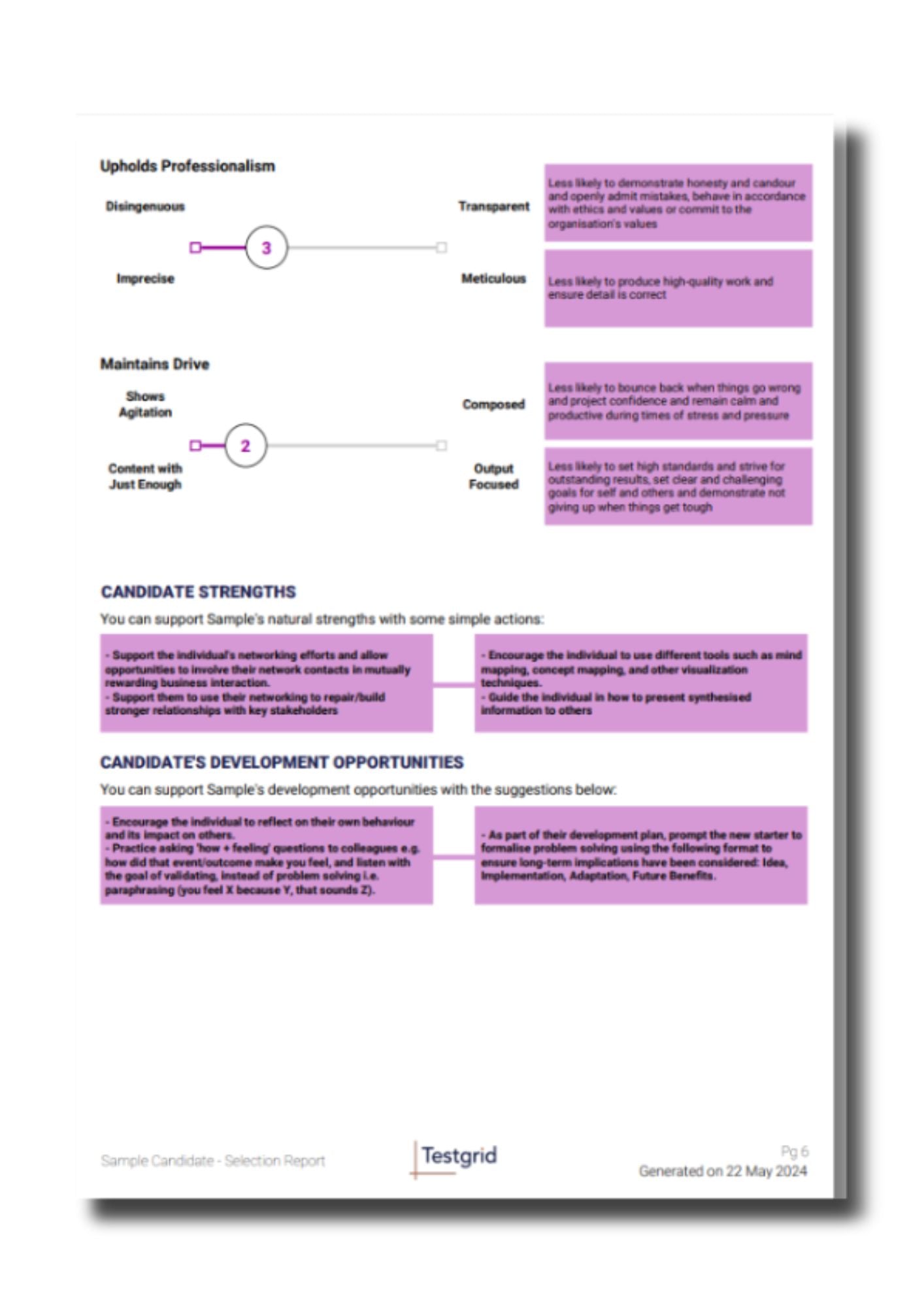 You will receive individual reports within several hours of each candidate completing their assessment.